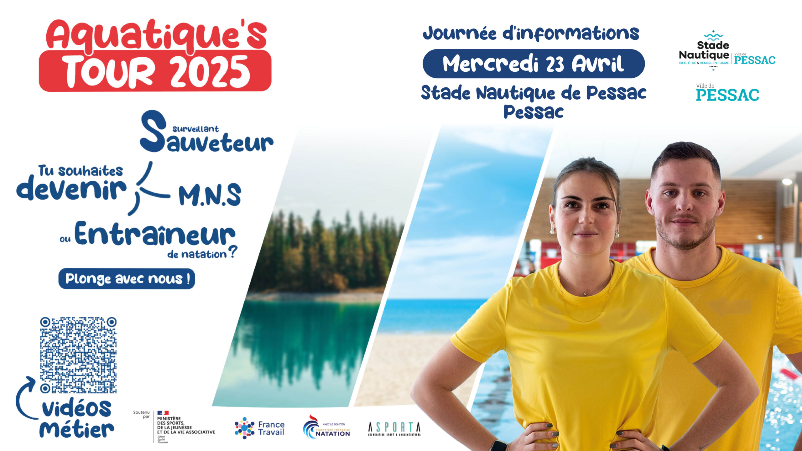 Le Stade Nautique de Pessac vous donne rendez-vous le mercredi 23 avril 2025 pour une journée entièrement dédiée au métier de Maître-Nageur-Sauveteur (MNS) dans le cadre des Aquatique’s Tour 2025.